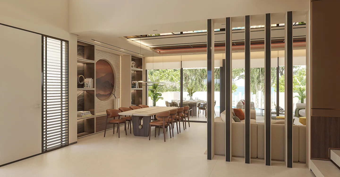 Každá rezidence je vybavena prvotřídními materiály — velkoformátové dlažby, kuchyně se spotřebiči nejvyšší řady, systém inteligentní domácnosti, klimatizace teplá/studená, vlastní garáž pro minimálně dvě vozidla a příprava pro nabíjení elektromobilu.