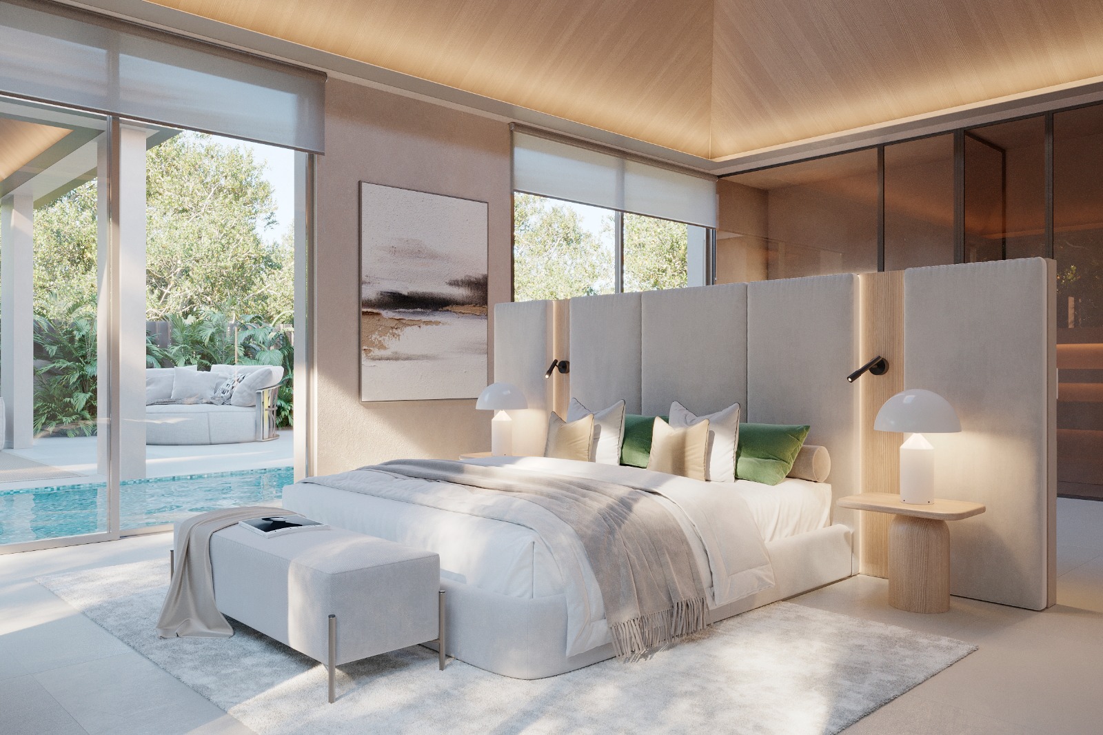 Vila disponuje 5 prostornými ložnicemi a 6+2 koupelnami, které zajišťují maximální pohodlí pro rodinu i hosty. Čistá obytná plocha činí 534 m², celková zastavěná plocha dosahuje 650 m². Interiér je navržen s důrazem na přirozené světlo, otevřený prostor a elegantní moderní design.